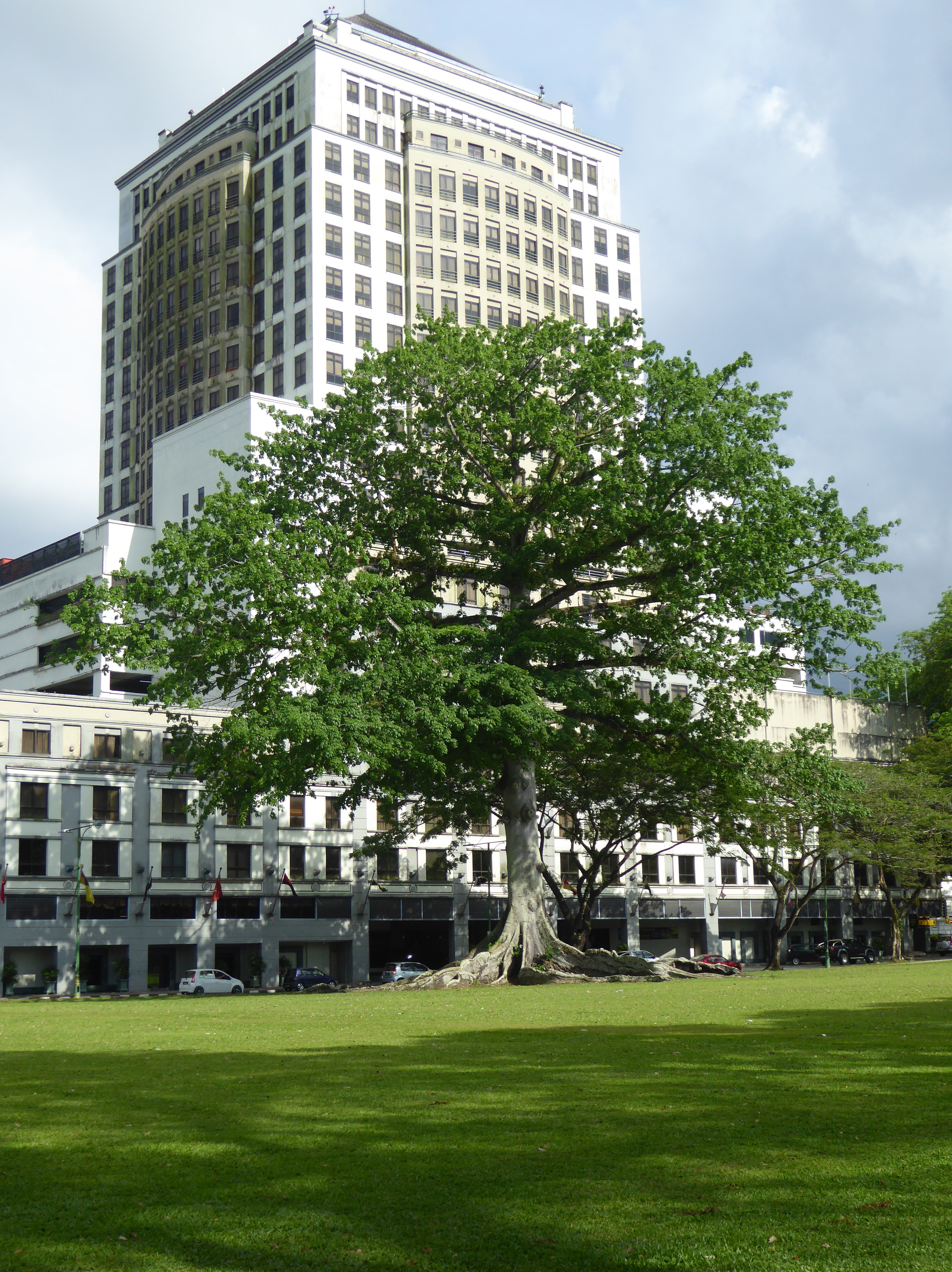 Sarawak has a chequered history, given to the British as thanks for assistance in crushing a rebellion, the British Colony was returned back to Sarawak in 1946, by the last “White Raja”. The fort, cathedral and governors house are among the remaining colonial buildings that dot the town. There are brass placards around town for a self guided heritage trail, starting at the riverside. The architecture in an interesting mix of colonial, Chinese pagodas and chop houses, a veritable mix of styles including the very modern. The Sarawakians are proud of their heritage and current cultural status and see themselves as better educated, more altruistic , healthier and fitter than their Malaysian counterparts, or so we are told by a chatty chap as we head out of town. I enjoyed the fact that a tree – over a hundred years old and a cotton tree – brings out such passion in Kuching residents, fiercely protected, celebrated and written about frequently in the local news, it sits on the edge of the plaza. We simply had to take a photo of the famous tree. It is the largest tree in Kuching!