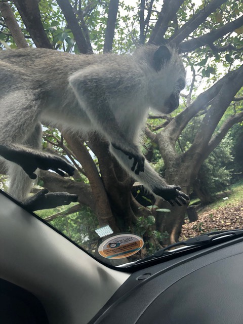 We chose to eat our picnic in the car to avoid the monkeys. Those that ate on the beach were bothered not by monkeys but by the eagles dive bombing them for food – quite something to behold!